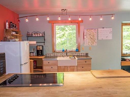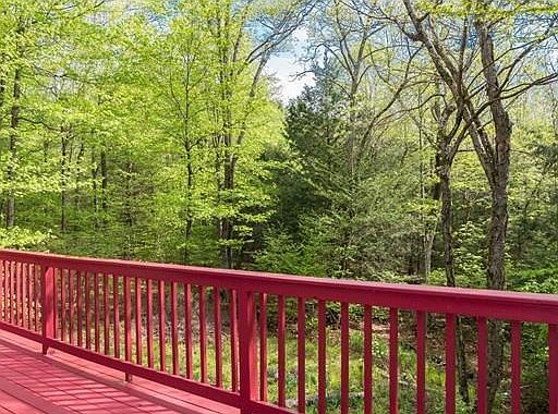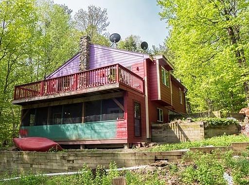 4.8 ACRES of campground like private, tranquil, wooded setting makes you feel like you are in a tree house removed from the chaos of the world. This home was built in 2005 and has a very open/flexible floor plan with large eat in kitchen with hearth and wood stove that opens to huge deck. Good sized bathroom has jacuzzi tub and laundry hook up. Master bed has skylight, finished, walk out basement has family room, 2nd bedroom, wood stove, and a screened porch. Super sized mud room and dining/office/living room area between mud room and kitchen. This property abuts a wild life refuge with hiking trails and lake too. Some finish work such as painting will add quick equity to this little charmer !