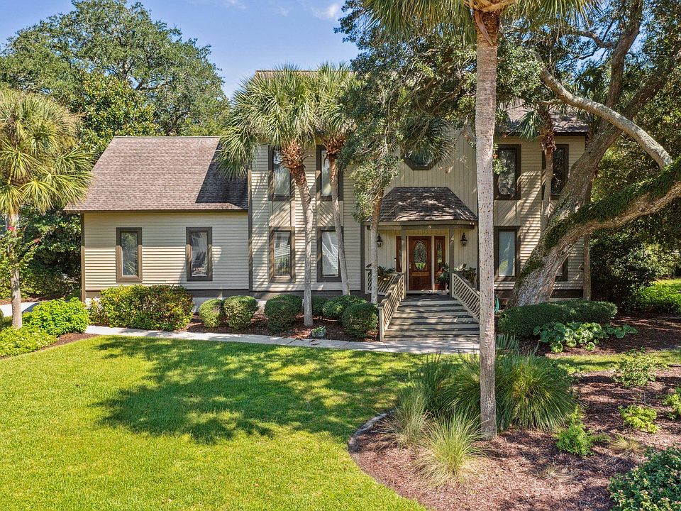 Welcome to 19 Hidden Green. This meticulously cared for home sits in the heart of Wild Dunes on a beautiful corner 1/3 acre lot with majestic oaks and over 30 palmettos & mature landscaping. Enter into a large foyer flanked by a formal dining room and parlor/study both with custom trim details. Just down the hall opens up to family room with gas fireplace, built ins and even a wet bar area. The adjacent kitchen is made for the cooking enthusiast with a large island with a gas cook top , granite counters, plenty of cabinets and drawer space, a desk area with room for those family recipes and a walk in pantry. Now venture off the kitchen and family room to the sun room, this room runs the entirety of the back of the house with a wall of windows letting in all the natural light. beautiful backyard. This room is quite versatile with countless possibilities for use. There is a large deck off this area making it the perfect spot for grilling and gathering. A powder room and laundry room complete this floor. Upstairs you will find the owners retreat with custom walk in closet and updated bath with soaking tub, tile shower and new vanity area. Directly off the master (separated by pocket door) is a fantastic space which can be an office/reading area or even a 5th bedroom if needed. This space accesses the upper deck and even has its own bath and closet not to mention the corner gas fireplace . A little down the hall are two guest bedrooms that are joined with a Jack and Jill bath set up with extended double vanity. There is another guest bedroom over the garage with its own private bath and second stairwell to the kitchen . This home has heart pine floors throughout the living areas and all bedrooms, ceilings are 9 feet tall on both floors, custom trim in living areas , newer roof and HVAC systems ,a two car garage and incredible yard. Do not miss out on this Wild Dunes gem. Wild Dunes offers a wonderful beach with easy access from Property Owners Beach House just a golf cart ride away. Two Tom Fazio Championship golf courses, tennis facility, multiple pools and 2 award winning hotels on property.