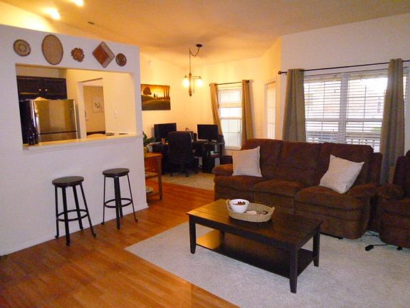 Tenants have moved! Easy to show. This is a beautiful upper floor unit that you can call home. The open floor plan offers vaulted ceilings, two bedrooms, two full baths plus a walkout to the balcony. Kitchen has an awesome backsplash and SS appliances. Also includes a detached garage. New cooktop ordered, & new microwave installed.