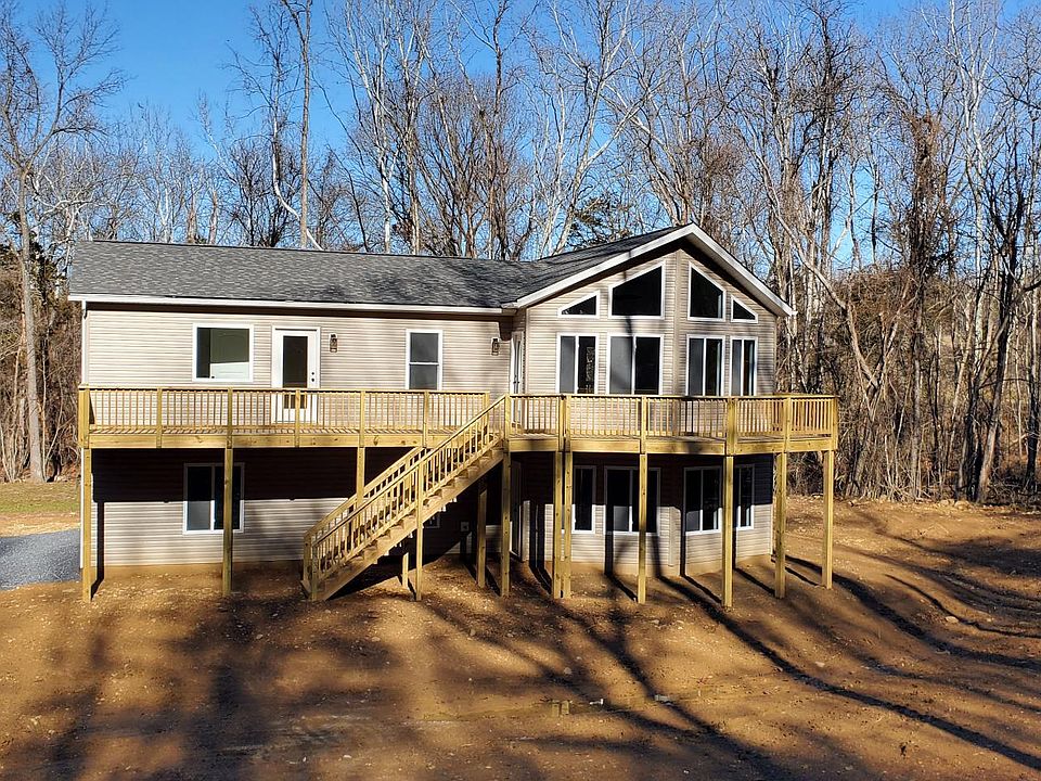 This stunning new construction home is set on over an acre of level land with private lake access, offering the perfect blend of modern comfort and peaceful surroundings. Thoughtfully designed with upgrades throughout, the home features vaulted ceilings and luxury vinyl plank flooring across the main living areas. The open-concept floor plan seamlessly connects the great room and kitchen, creating an inviting space ideal for entertaining. The kitchen is beautifully appointed with granite countertops, stainless steel appliances, abundant cabinetry, and generous counter space. The primary suite provides a relaxing retreat, complete with an upgraded luxury bath featuring a large tiled shower and a walk-in closet. Main-level laundry adds everyday convenience. The full basement is filled with natural light and includes a rough-in for a future full bath, offering excellent potential for a family room, additional bedroom, or flexible living space. Basement-level access to the two-car garage enhances functionality. Outdoor living is a highlight, featuring a full-length front deck perfect for relaxing and enjoying the views, as well as a 12’ x 10’ rear porch ideal for outdoor dining or entertaining. Located within a Sanitary District, with fees conveniently paid through real estate taxes, this property also offers high-speed internet, making it ideal for working from home. Enjoy easy access to I-66 and I-81, along with nearby hiking trails, wineries, restaurants, and more. Lot is cleared and build time is 4 months.