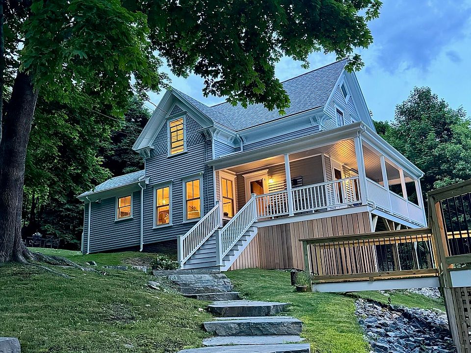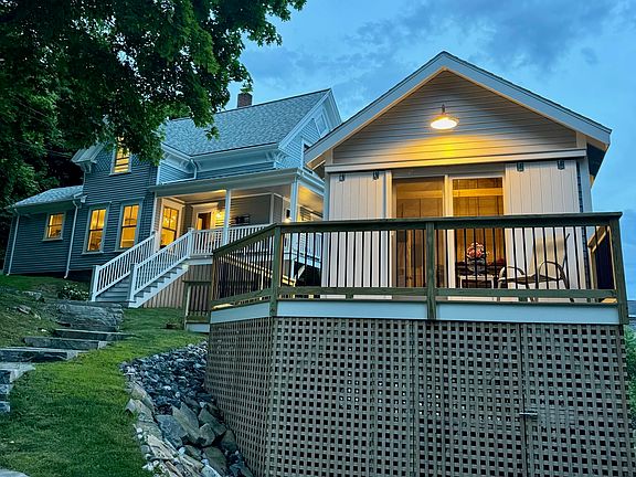 This 1895 ''New Englander'' and cottage sit on the side of a hill in the heart of South Bristol. The wrap-around farmer's porch catches cool sea breezes and provides distant views of the harbor and Damariscotta River beyond. This beautiful home has been lovingly renovated and restored. There is new plumbing, new wiring, new windows, new second floor bath/ laundry and a new 5-bedroom septic system now being installed. Also, deck has been replaced and a separate office/studio has been built with storage underneath. The auto-start whole-house Kohler generator will keep the lights on in any weather. The separate cottage has a bedroom, bath, woodstove and kitchen - perfect for short or long-term summer visitors.