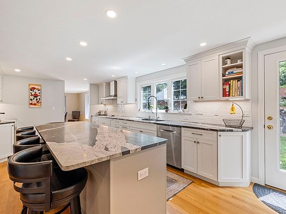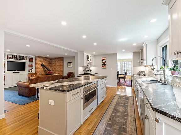 This house looks like a cape but acts like a colonial. Two story foyer. Front to back living room, dining room with enough room for 20 for dinner. Open kitchen, renovated in 2023 with stunning white cabinetry and oversized island with tons of storage. Coffee area, double ovens, sub-zero fridge, wolf stove, anything the chef would want. Cozy family room with wood stove and built-ins. There is a bedroom, full bath and office on the first floor. Also a half bath laundry room right off the kitchen. Upstairs, three bedrooms, the primary suite includes a large walk-in closet and primary bath. A renovated family bath on this floor as well. The lower level has plenty of finished space, currently used as a training gym with full bath and potential kitchenette. One car garage, great yard, on a quiet street between two of the best conservation areas—Arlington Great Meadows and Arlington Reservoir. All of this with great proximity to the Arlington Heights,Wilson Farm, the bike path, restaurants.