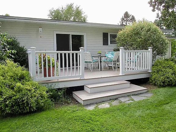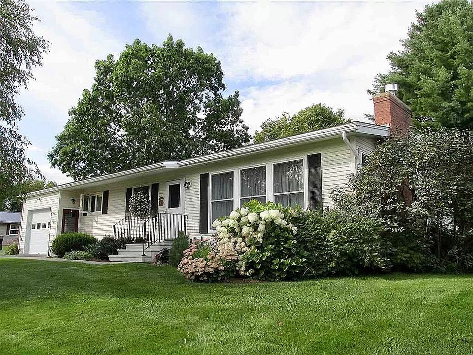Very well cared for 3 bedroom 1.5 bathroom ranch home on a corner lot. Lots of perennial landscaping and interior upgrades. Soak in the morning sun from your back deck and enjoy the fenced in private back yard. The interior feels spacious and modern because of the cathedral sloped ceilings. There is a beautiful field stone fireplace with a gas stove insert. The basement is partially finished with a half bathroom, laundry, and plenty of storage. The one car garage enters directly into the kitchen. Easy to maintain vinyl siding and economical to heat. Move-in ready.