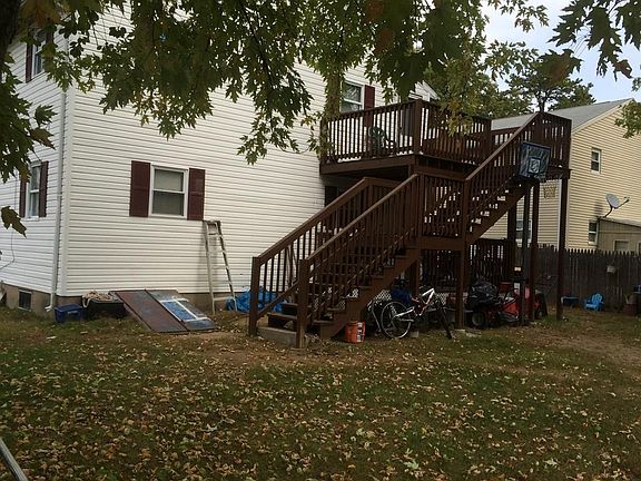 Hola! New roof on this vinyl sided two family home. Living rooms with bay windows. Eat in kitchens with exits to nice decks. Three bedrooms with double closets in each unit. Ceramic tile floors in bathrooms. Nice size yard all fenced-in.