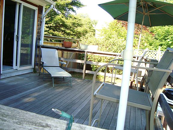 This is a 2 bedroom 1 bath home located within two blocks of the water in beautiful Jamestown, RI. It has an open and airy living room and kitchen area which opens onto a large mahogany deck. This is a great space for cooking and entertaining, as both the kitchen and walk out deck overlook the expansive and private, enclosed backyard. The kitchen is equipped with all black appliances - oven/stove, refrigerator, microwave, and dishwasher. The cabinets are custom designed cherry wood with bamboo inserts. The floors and window/door frames are original hardwood. The house has both an attic and basement which are full but unfinished. This house has served the owner as both a relaxing home for year-round enjoyment of the quaint island of Jamestown and as an investment property by renting out to seasonal and/or local year-round tenants. The house currently is rented with a lease that ends December 31, 2014. Lease is available for renegotiation.