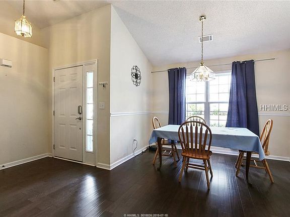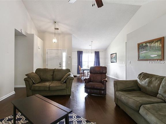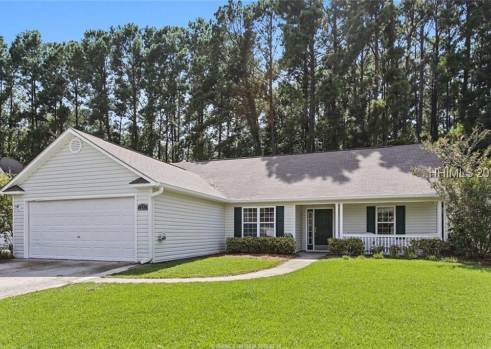 Private wooded location 3 bedroom 2 bath single story Woodbridge home. This home features hard surface flooring throughout the main living areas, new carpet, newer appliances and newer HVAC. There is a large deck off the back of the house overlooking a wooded preserve. A fenced yard & fire pit area round out the outdoor living space. The two car garage has been converted to living space & storage, however, it could easily be converted back to a garage. Woodbridge has a community pool and leisure trails around a 16 acre park. It is located near the new Super Kroger, entertainment, shops and dining. Zoned for River Ridge Academy & May River.