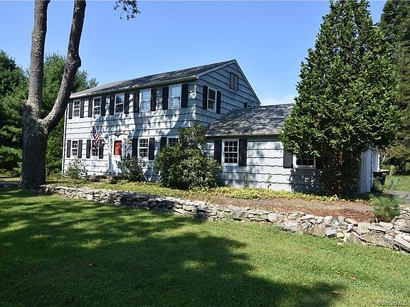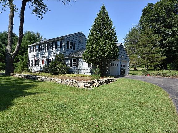 Location Location Location... Classic 4 bedroom, 2.5 bath colonial on beautiful 1 acre park like level lot at end of cul-de-sac.. 2 car attached garage. Never before on the market. Great floor plan, lots of storage, hardwood floors throughout the house except kitchen and baths. huge formal living room with double doorway into family room with cozy brick fireplace. Large original country kitchen has character with pass through into the perfect size dining room. Upstairs is master bedroom with walk in closet and a double door closet with built-ins. Master bath is a good size with tiled tub/shower & Granite top vanity. 3 additional good size bed rooms with hard wood floors and huge closets. Main hall bath with anew granite double sink vanity and tile.Well maintained,bring your decorating ideas Some improvements are: septic replaced in 2000, bathrooms updated. 2003 New shake siding, Septic 2000, driveway 1999. Property borders Rock Ridge Country Club.