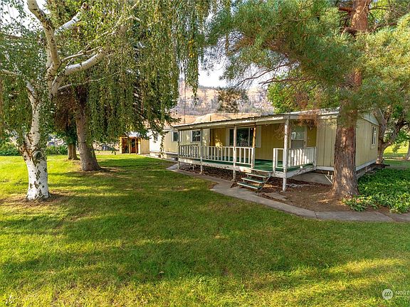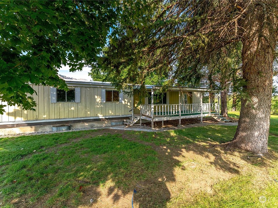 Manufactured home built in 1973 with detached garage on 3 tax parcels, totaling .62 acres. The manufactured home is placed on a full foundation with separate outside entry. The basement area is framed and wired for power and rough plumbed , but needs to be completed. The basement is framed for a 3 bedroom 1 bath and the upper finished space is a 3 bedroom 2 bath. The total potential space available in this home is 3,264 sq. ft. Mature landscaping around the main home. One car detached garage. Lots of opportunity for expansion for shop or ???.