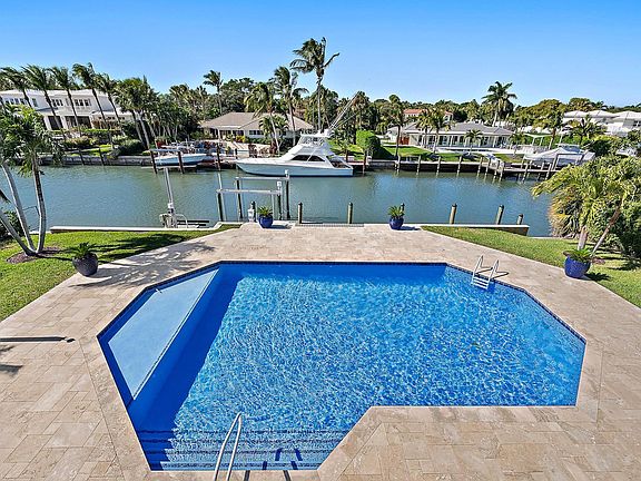 One-of-a-kind waterfront residence in the exclusive High Point Island enclave off Sewall's Point, set along a rare blue-water canal with deep-water access, completely rebuilt in 2024 to the highest standards and professionally designed. The well planned layout includes 4 spacious bedrooms, 4 1/2 baths, a den/office and the rare convenience of laundry rooms on both the main and upper levels. The gourmet kitchen features custom inset cabinetry, an impressive 10 1/2 foot island, and professional-grade Thermador appliances with a Sub-Zero refrigerator, ideal for both everyday living and entertaining. The primary suite is a private retreat offering a balcony, dual walk-in closets, a separate water closet, a soaking tub, and an oversized spa-style shower. Outdoor living is exceptional, with a custom heated pool and sun shelf, covered patio, a new 55 foot dock, 100 feet of water frontage, two boat lifts, and no fixed bridges, offering effortless access for larger vessels. Additional highlights include a 2021 metal roof, 2025 impact glass, whole-house generator, EV-ready garage, circular driveway, ample storage, and an oversized air conditioned garage with 12 foot ceilings and 30 foot depth ideal for an RV, car lift, or specialty vehicles. A rare opportunity to own a fully customized waterfront residence in one of the Treasure Coast's most desirable island communities.