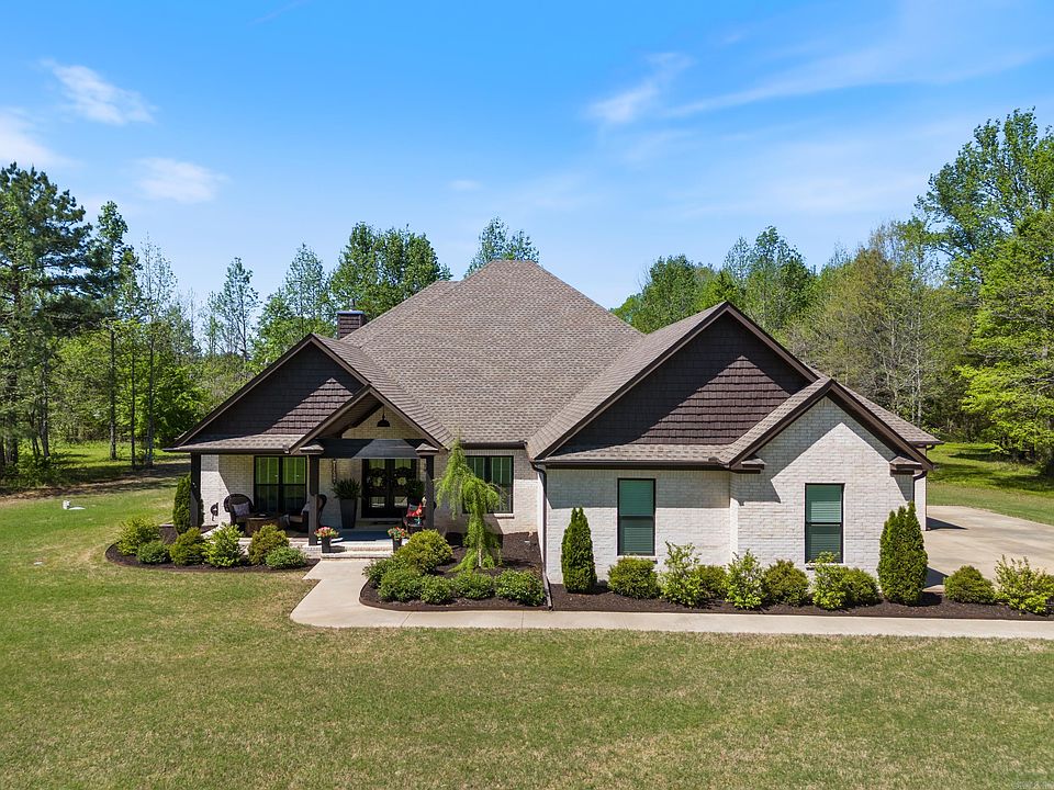 LIKE NEW custom built farmhouse style home nestled on over 5 acres! Welcome home to your luxury oasis. This immaculate one-level home with the desirable open, split floorplan, boasts high end finishes & upgrades throughout. Featuring 4 spacious bedrooms, each with its own walk-in closet, office, dining area and a huge bonus room that can be utilized as a media room or second living area. With 3.5 bathrooms, including a luxurious primary en suite, and a large laundry room, convenience meets sophistication at every turn. The huge bonus room can be utilized as a cozy den or media room. The chef's kitchen includes granite countertops, huge island, lots of cabinets & counterspace, coffee bar and walk-in pantry for all your culinary delights. Entertain in style or simply unwind on the amazing covered patio offering the perfect cozy setting with an outdoor fireplace. The beautiful professional landscaping with sprinkler system provides curb appeal and ensures a seamless transition from the exterior to the interior. Enjoy the country feel with the convenience of just being minutes from the highly rated Greenbrier schools, restaurants and shopping. Won’t last long! Agents see remarks.