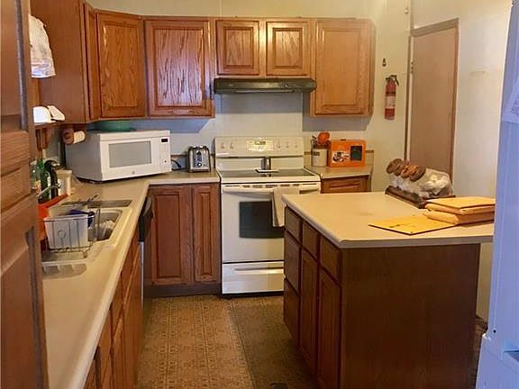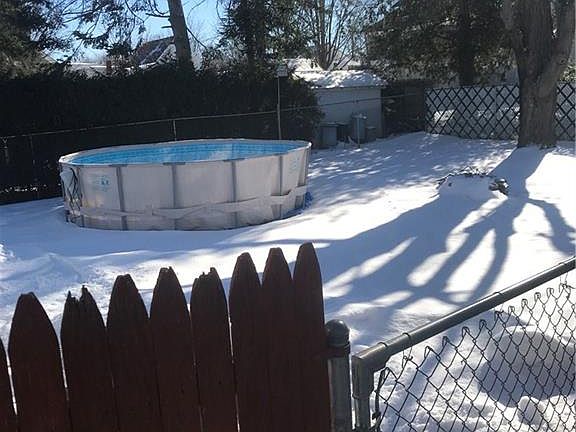 This large family home has a large enclosed porch overlooking the fenced in yard and has a pellet stove for heat, New kitchen with appliances, master bedroom on the first floor and four bedrooms up. Off street parking and garage to boot. Great home at a great price
