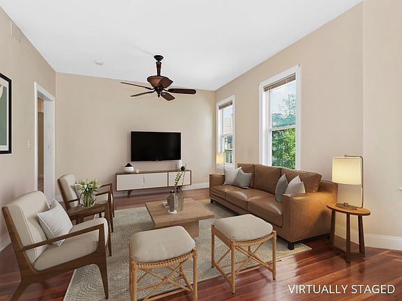 Elegant home in great Somerville location steps to Assemble Row is the one you have been waiting for. This 3 beds, 1 bath residence is only one short flight from the street level perfectly situated on the second floor of this grand corner building. The unit was completely renovated in 2005 & it features abundance of windows, hardwood floors throughout, high ceilings, central AC and in-unit washer and dryer. Enter into the open living/dining area with wall of windows allowing for natural light to pour in throughout the entire day. The contemporary kitchen has granite counters, stainless steel appliances with gas cooking & generous cabinets. All three bedrooms can accommodate king size beds and have good closet space. Enjoy a glass of wine or your morning coffee on one of the two private outdoor spaces. There is additional storage in the basement ideal for bikes and sport equipment. This home is a great investment located steps to the green line extension, Foss Park & all major highways.
