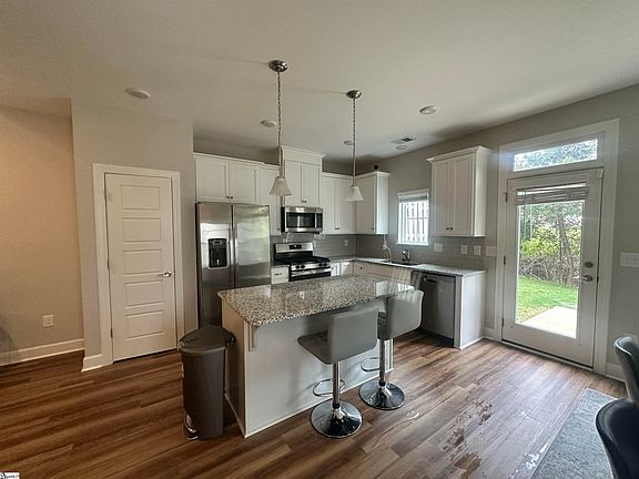 This maintenance-free townhome boasts 3 bedrooms, 2.5 baths, and is fully furnished - just bring your clothes and personal belongings! The open-concept main floor is perfect for entertaining, with a bright living room featuring transom windows, a dual-tone kitchen with subway tile backsplash and gas range, LVP flooring throughout the main level, and oak stairs with painted risers. Upstairs, enjoy a loft, walk-in laundry, and a spacious Owner's suite with tray ceiling, garden tub, and dual sinks. Additional features include a pet nook under the stairs, extra storage, and an extra-wide driveway with a 1 car garage. Move right in and enjoy the perfect combination of style, comfort, convenience and location in a home that truly has it all!