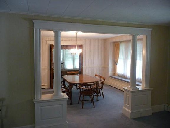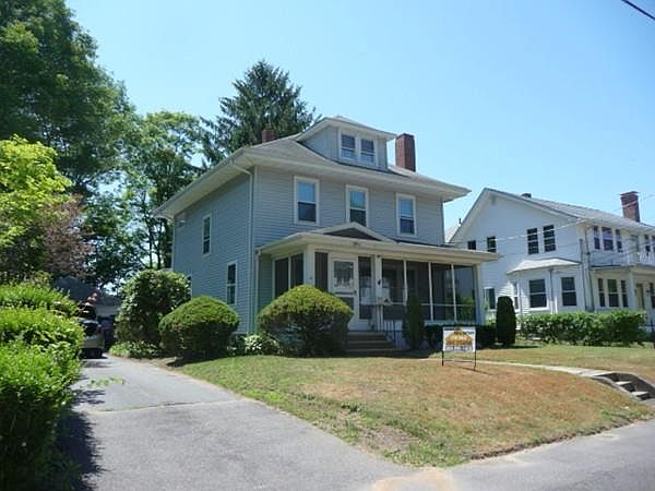 this is truly a classic hip roof colonial. Charms of yesteryear!! Well cared for and waiting for a young family to come fall in love. Nicely sized kitchen with pantry containing cabinets and counter space. Formal dining room (huge picture windows with window seats) and columns framing the entrance to the fireplaced living room, cozy den or tv room, and 1/2 bath on first floor. Second floor features 3 good sized bedrooms and a full bath. Full basement ready and perfect for storage or dad's own workshop. Private yard with 2 car detached garage. Convenient location minutes from rt 24 and rte 495.