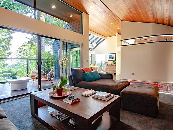 Open Sunday 6/10 has been canceled. Stunning contemporary home that is architecturally significant. Designed by David Dunahugh. Updating includes granite, stainless, paint, and careful attention to finishes that are true to the style of the house. Living room, family room, + two bonus rooms. Valley views to the South. 1288 SF of decking. Every bedroom and living area has a slider door and a deck. Incredible light and stunning views.