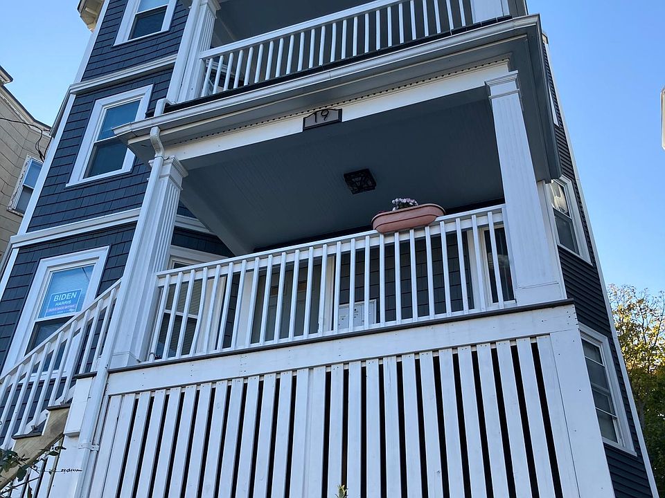 19 Juliette Street - Pet friendly, no-broker fee condo on Meeting House Hill (Unit 2). This charming second floor 2 bed 1 bath condo overlooks the Bay with beautiful panoramic city views from its front-facing porch. Enjoy the spacious back deck with a view of trees and greenery. Freshly painted interior features include a stone counter, hardwood floor kitchen with maple cabinets, a custom fold-out table, full appliances, and a large pantry with in-unit washer and dryer. A dining room with an original stained glass window and original built-in cabinet, connects to the open concept living room with great natural light. Recently upgraded electrical, building safety features for fire and smoke detectors, and 2020 renovated front steps of condo building. Blocks from Fields Corner Station with Redline and Bus, minutes from local shops. Credit check and references required, no exceptions. This building is LGBT friendly. Tenant pays for oil heat, electricity, and gas (all separately metered). Pet friendly and no smoking please. Other two units in the building are working professionals and maintain typical business hours; Looking for neighbor(s) with a similar schedule, please.