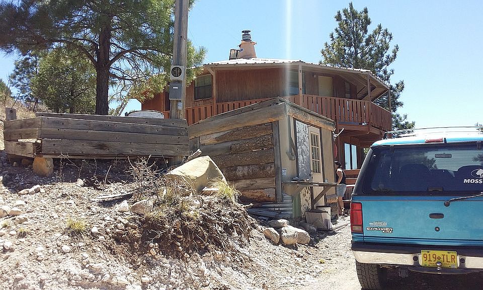 TIMBERON! This is a 12 sided 2 story plans built home. It is on the crest of the valley of Sacramento river at 7422 feet elevation. It is hard to capture in pictures, but has remarkable presence and attention to detail. Custom tile and stone work throughout. Natural woods, and well insulated. Inset fireplace in the central column and also a wood burning cast iron stove. Upstairs are two bedrooms and 3/4 bath. Downstairs one bedroom and full bath with jetted double size tub. Window AC for the downstairs on rare hot days. Propane or AC powered fridge, and propane gas range. Has two outbuildings for storage, and a small open front garage. It is 74 miles direct line of sight from El Paso, and gets about 10 over the air TV channels. There are deer, elk, mountain lion, coyotes, eagles, hawks, and other wildlife all around. It is the perfect unknown destination for anyone wanting to get completely away from the rat race. On a cul-de-sac street, with no through traffic. Hard to find, and hard to leave once found. Timberon is a destination with one paved road in and out. There is a community center, with pool, a small golf course, paved airport runway, simple dining and limited services.