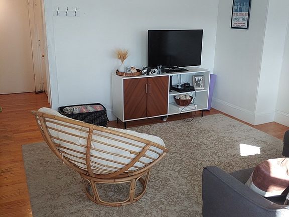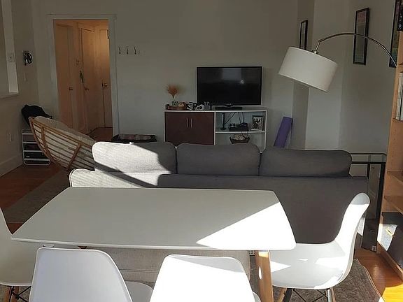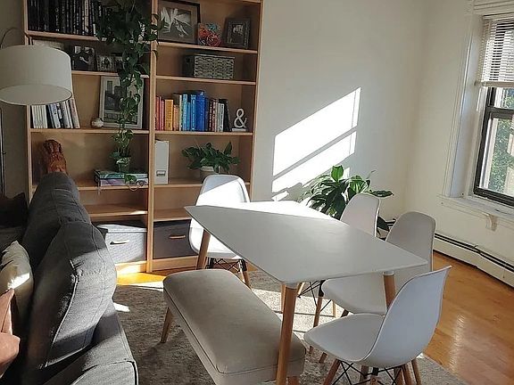 Available to move-in NOW Sunny top floor large 1BR features bright south-facing living room and views of the Boston skyline. Located on a quiet street in Fort Hill. The other 2 apartments in the building are professional people. Lots of original Victorian charm, and a unique bowed window on the front facade. Comes with a fully-equipped kitchen including gas range, dishwasher, and disposal. Pre-wired for Verizon or Comcast internet service. The bedroom will comfortably fit a king-size bed and has a walk-in closet. Gas & electric paid by tenant. Free laundry in building. 100% non-smoking building. Quiet hours in building 11p-9a. Perfect location for commuting to hospitals, universities, and downtown. There is ample free parking (no permit required) on the street directly in front of the building. Possibility of small dog, evaluated on case by case basis. Orange Line is 9 min walk. Silver Line is 4 min walk. 12 minutes to Brigham Circle via bus or 20 minutes walking. Credit and background check required.. Tenants are required to pay First,last months' rents and broker fee equals to one month's rent. Pets $100/mo extra subject to owner approval. No Cats!