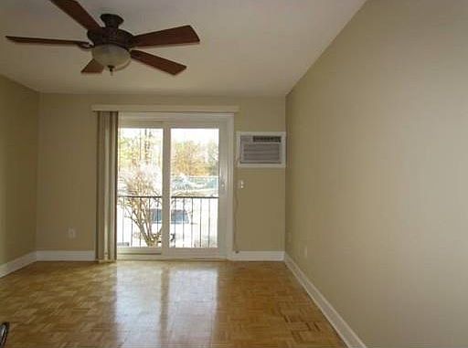 End unit, 1st floor. Fresh paint, newer appliances, stackable washer/dryer, wall A/C and heat. New double pane tilt windows. Slider overlooks tennis court. 2 parking spaces. Ample basement storage. One dog considered.