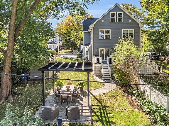 LUXURY AT ITS FINEST! Prime center location close to shopping, restaurants, commuter rail & Lake Qwannapowitt. This home is the epitome of modern elegance with its open concept layout, sun filled rooms, 9ft ceilings w/crown molding, gleaming oak HW floors, freshly painted walls, gourmet kitchen w/dual fuel stove & hood, white cabinetry, pantry closet, granite counters & breakfast bar are sure to impress. There is also a ½ bath. Relax in the warm & inviting family room w/gas fireplace & sliders leading out to the deck overlooking the incredible private backyard. Check out the paver walkways, patio w/pergola, outdoor lighting, water feature, custom built storage shed, drip irrigation for the flower beds. 2nd level has 3 large bedrooms, full bath. Primary Suite has an en-suite tiled bath. Full sized 2nd floor laundry & walk-up attic for future expansion. Dry basement w/storage space & workout area. 2014 rear 4 story addition & renovation down to the studs. Welcome Home!