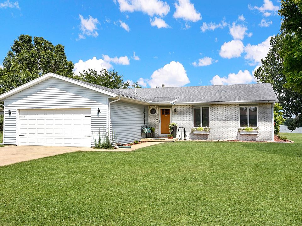 STUNNING! This waterfront 3 bedroom, 2 full bath, 2-car garage ranch situated on a massive half acre lot in Mansfield's coveted Lakeside Village subdivision is simply amazing. Completely open floor plan which is perfect not only for entertaining guests, but also provides for stunning lake-views from almost all areas of the home. Updated kitchen with all appliances remaining, granite counters and updated fixtures. New flooring throughout in 2017 & 2018, ceiling fan and fixtures all new in 2018, all other lighting fixtures new in 2019. Primary and Guest bath updated with granite surface vanity and fixtures in 2020. Massive primary suite with private en-suite bath. Beautiful screened in back porch that provides for amazing lake views. Private lakeside dock with attached deck will be used all spring, summer and fall. Custom 4x24 aluminum dock addition installed in 2019 by GH Marine. Covenants provide for resident only boat access and lake use. Storage is not an issue as the sellers are providing the new homeowner a custom 10x14 English Garden Shed, NEW in 2020. Easy access to Rt 150 and I-74 to satisfy all needs of access heading East or West. Located a short 20 minutes from the heart of Champaign, or only 35 mins to Bloomington, IL.