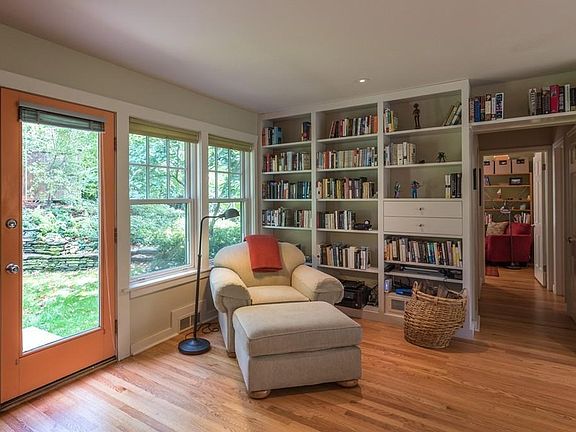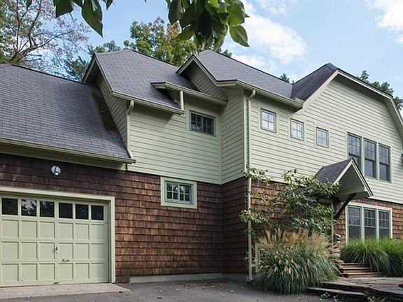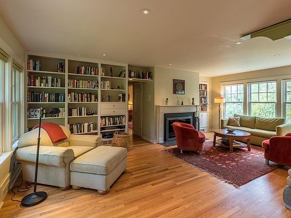 Elegance, sophistication and a touch of whimsy in this impeccable Contemporary with Craftsman style sensibility located on a highly desirable cul-de-sac in the Smith College neighborhood. Renovated 10+ years ago, the 2nd floor was added & the 1st floor re-imagined, creating an open floor plan with kitchen, dining and living areas, cleverly designed for distinction of spaces. European inspired kitchen with stainless steel appliances, Ashfield schist counter tops and access to the private stone patio & garden. 1st floor includes a bedroom & office suite separated by French doors and stylish retro full bath. 3 more spacious bedrooms up with 2 full baths. Master bathroom w/stacking washer/dryer, tiled shower, glass bowl sink. Bonus room off of one of the bedrooms, ideal for a yoga studio or kids' hideaway. Lovely, landscaped yard w/stone walls,perennials and mature plantings.1-car garage & space for 2 more cars in driveway. Central a/c,full useful basement.