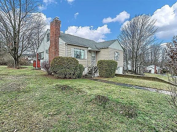 This cozy, well-kept house offers a wonderful home! The good-condition property sits on a nice 0.26-acre lot. The first floor features 3 bedrooms, 1 full bath, a fireplace, kitchen, dining room, and living room, with both interior and exterior stairs to the top floor. The top floor includes 2 bedrooms, attic storage, a full bath, and a kitchen (easily convertible to another bedroom). It can be used as a single-family home (combining the top and middle floors) or as two separate apartments, offering nice views. The basement has an open garage with an automatic door, convertible to additional rooms/a playroom, plus a washer/dryer, office/bedroom, and stairs leading up. It's a walk-out basement with a steel beam, a 2-year-old furnace and a new hot water tank (electric), and a roof approximately 10 years old. Enjoy the deck and nice-sized porch!
