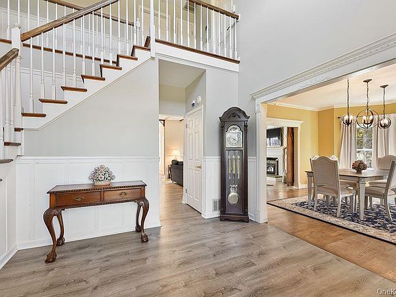 Designer touches throughout: renovated tile baths, beamed ceilings, ornate trim, and hardwood floors. The backyard oasis boasts a pool with Trex deck, hot tub, and pergola—ideal for summer entertaining. Relax on the front porch or enjoy a BBQ by the pool. Heating: Oil (Above Ground, decking around pool looks like in ground pool)-- Parking: 2-Car Attached Garage with EV Plug-Prime location: Private yet minutes from schools, shopping, and Taconic Parkway.