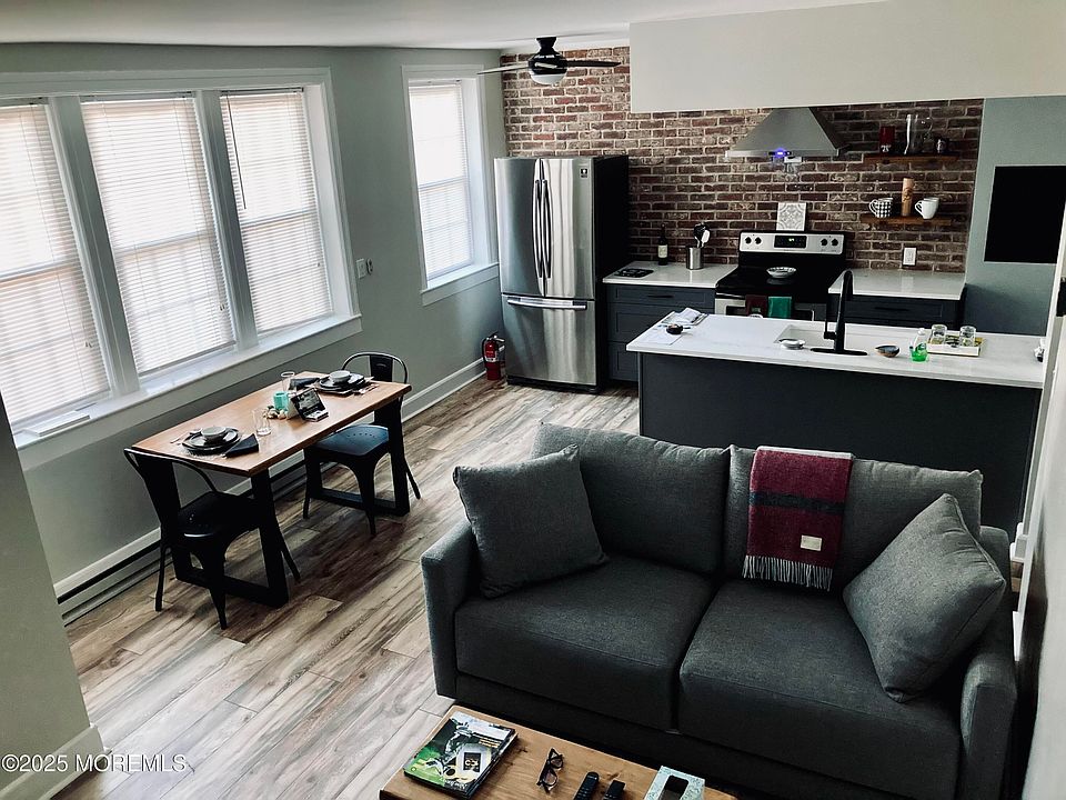 Located in Downtown Red Bank. Move in by May 1st, just time for summer! This unit is completely remodeled. New appliances, quartz counters, soft close cabinets, water resistant floors, dishwasher, exposed brick. Walking distance from bars, restaurants, Red Bank train station to NYC and post office. First floor with private parking at rear entry. Tenant is responsible for electric and cable/internet. Available for annual lease starting May 1st. Showings begin Saturday March 22nd.