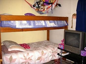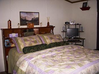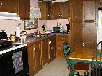 This 3 bedroom, 2 bath single wide on leased land offers privacy galore, an applianced kitchen, cathedral ceilings, deck and more!