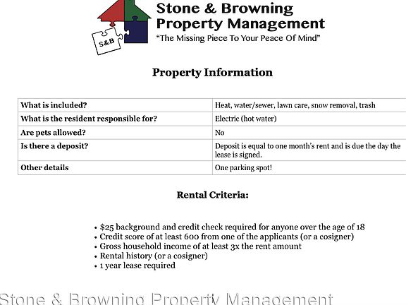 - Sewage included in rent