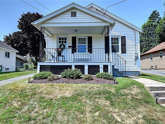 Filled with Charm and Character !! Adorable one level 1927 Ranch Bungalow with high ceilings original molding , hardwood floors throughout . Perfect starter or down-size option. Light and airy,with an abundance of large windows windows . Beautiful living room with large center fireplace open to dining room. Kitchen has small mudroom entry at rear of the house. Enjoy summer evenings or your morning coffee on the covered front porch . Two Bedrooms one full bath. Large Dry basement could be additional finished space. Two car garage , nice level manageable back yard . Oil furnace, this home does also have gas line already in the house. Very convenient location minutes to highways ,shopping, schools ,yet tucked away in a nice neighborhood. With a little updating this home will be your gorgeous little retreat.