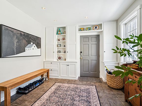 Perched along scenic Linden Hill, this stunning village home offers exceptional privacy, comfort, and spacious interiors. A paved driveway leads to a one-car garage with a covered entrance, ensuring effortless access in all seasons. Inside, a generous mudroom provides a practical transition into the inviting living room, featuring a cozy propane fireplace, or the well-appointed kitchen with sleek stainless steel appliances. The sunlit dining room, complete with French doors, opens to a charming patio—perfect for outdoor relaxation. The main level also features a private primary suite with an attached bathroom and laundry, along with a conveniently located half-bath for guests. Upstairs, two additional bedrooms, a full bathroom, and a dedicated office space provide ample living accommodations. Equipped with four energy-efficient mini-split systems for year-round climate control, the home also features a forced hot air system for added warmth during colder months. The full basement, with its poured concrete foundation and impressive ceiling height, offers excellent storage or potential for further customization. Ideally situated less than half a mile from the Village Green and Woodstock Country Club, this central location is truly unbeatable. Don’t miss the opportunity to experience this exceptional home—schedule your private showing today!