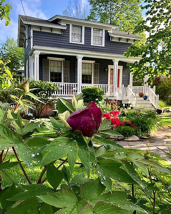 This charming c. 1850 village home in the historic district of Rhinebeck is a successful blend of vintage and modern, with many period details and contemporary updates. Full width porch, beveled glass front door, eight over twelve pane windows and crown moldings reflect the age and character of this classic residence. Architect designed renovations include the spacious kitchen w/limestone counters, quality appliances and French doors to rear tiered deck. Mature specimen and fruit trees, slate walkways and period barn.