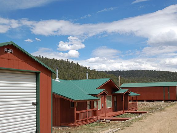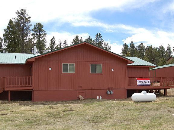 Duplex located just outside (Southeast) Angel Fire Resort Complex. Each unit is 2 bedroom / 2 bath, 1040 square feet with detached tandem garages. Lot size is 2.37 acres. Duplex was recently renovated: kitchens; bathrooms and new windows. Newly painted inside and out. Wood stove, propane and bedroom floor board heating. Well and Septic. Ideal for owner to live in one and rent second unit. No Angel Fire resort dues.