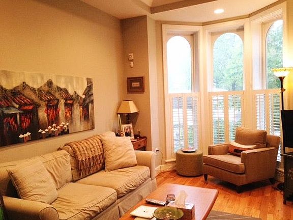 Gorgeous one bedroom condo in 1870s converted row house ON Logan Circle. Floor to ceiling bay windows overlooking the Circle, 13 ft ceilings with crown-molding, W&D, jacuzzi tub, new appliances, hardwood floor, small balcony overlooking backyard, central AC, huge closet, steps from 14th Street and Shaw.