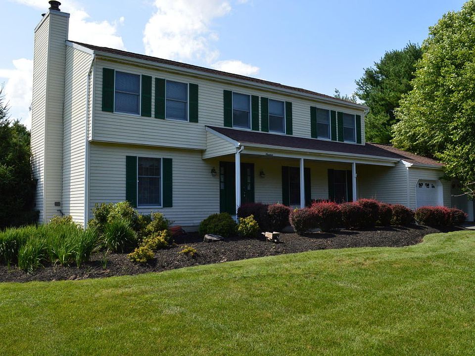 Lovely 5 bedroom 3.5 bath Colonial located in the desirable Clover Hill section of Colts Neck. Set on a private cul-de-sac street, this home features updated eat-in kitchen w/granite counters ceramic floors, gorgeous updated bathrooms with marble counters, formal dining room, sun filled spacious family room w/gas fireplace, wet bar french door leading to deck which overlooks private backyard, generous sized bedrooms with plenty of closets, decorative moldings, large walkout basement, fenced in 36x18 in-ground pool and a 2 car garage. A great value. Excellent schools, close to parks, beaches, shopping transportation. Easy commute to NYC Philadelphia. Low taxes. Room sizes are approximate.