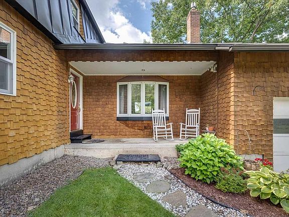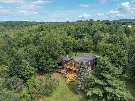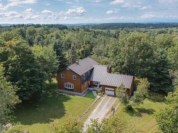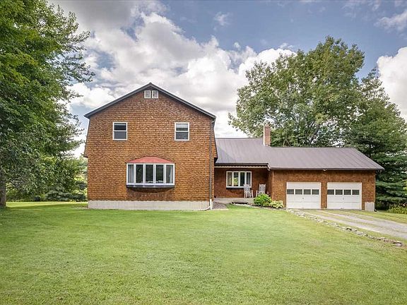 A rare combination of 1.8 acres land with views, wildlife, and privacy, while being within walking distance to multiple restaurants, a movie theater, and shopping! This four-bedroom home offers plenty of space to spread out, indoors and out. On the main floor, the spacious kitchen bathes in the light of the afternoon sun, highlighting the maple cabinetry, newer stainless appliances, and granite counters. The room opens to the adjoining breakfast bar on one side, or a formal dining area off the other. There are two separate living areas, each with its own fireplace (one gas, one wood) and three bay windows to allow for maximum light throughout this level. A 3/4 bath rounds out the main floor. Upstairs you'll find three nicely sized bedrooms which share a full bath. The massive primary suite offers abundant closet space including a large walk-in (with laundry!), a beautifully remodeled bath with large jetted tub, tiled shower, and marble double vanity, and a large balcony off the sleeping room highlighting sunset views of the Adirondacks. The attached two-car garage and full, insulated basement offer tons of storage space. Outside, enjoy a covered porch, and two other decks. The sprawling lawn offers plenty of play space, excellent exposure for gardening, and a number of mature trees, with enough maples to support a small sugaring hobby. All of this, plus nearby access to the VAST trail and just a short jaunt to Indian Brook. Don't miss this opportunity to have it all!