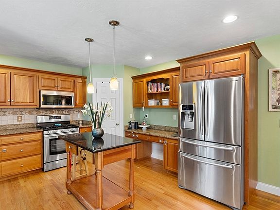 Welcome to this south facing, charming cape style home with 2-3 bedrooms located in the Blue Ribbon winning, E Ethel Little school district. Walk right into the cozy fireplaced Living Room with built-in bookcases and hardwood floors. The kitchen is open with stainless steel appliances, granite countertops, gas cooking, a spacious pantry, as well as a built-in desk. First floor room could act as a bedroom with a full bath, or a formal dining room. The sunroom off the dining area is bright with panoramic views of the backyard and vaulted ceilings. Additional features of the home include 3 full baths, 2 car garage, Rain Bird programmable sprinkler system, radon system, heated gutters, first floor laundry room, fully fenced in yard and a finished basement all located on quiet dead end street with easy access to I93. The dual-zone central HVAC system and smart thermostats will keep you comfortable all seasons in the most energy efficient way.