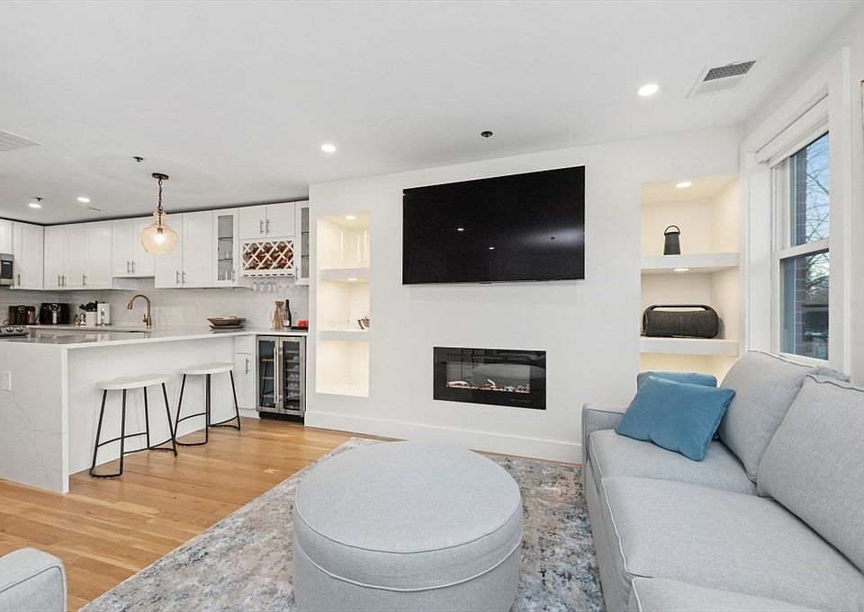 Completely rehabbed and updated home in the heart of the Charlestown gas light district, just one block from City Square! Everything was thought of during the recent rehab of this spacious and sunny 1 Bedroom/ 1 Bathroom condo. Open floor plan offers 675 square feet of living space and features large living/dining area, cozy electric fireplace, custom built-ins for storage, built in wine fridge and lots of light. Living area opens to well equipped kitchen featuring Quartz countertops and island with room for 2, large/deep sink, stainless electric range, dishwasher, refrigerator and microwave. The bedroom comfortably fits a king size bed & offers a large closet and egress, via glass slider, to a private deck. Full bathroom features an extra wide vanity for storage and large stall shower. Extra bedroom closet houses new washer/dryer and laundry area/extra storage. Extra deeded basement storage. Taxes do not reflect residential exemption.
