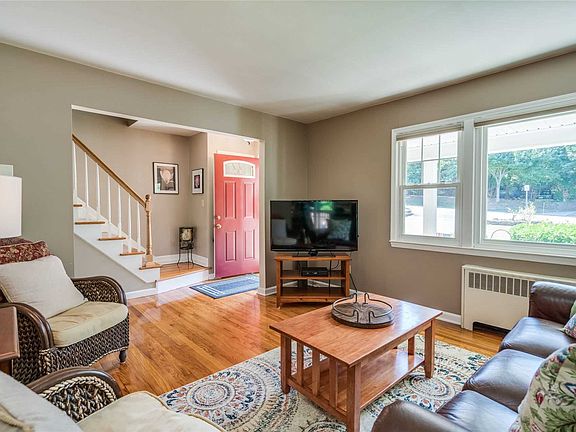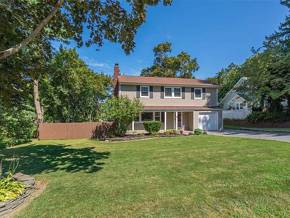 Move right in to this Center Hall Colonial with covered front porch less than 1 mile to Huntington Village and Heckscher Park. Foyer leads to living room with wood burning fireplace, and adjoining eat-in kitchen with glass sliders to patio. Picturesque windows and hardwood floors throughout, new siding, and first floor family room that can be used as home office. Updated en-suite master with large walk in closet, vaulted ceilings, and bathroom with dual sinks. Basement with laundry and ample storage space, plus one car attached garage. Situated on .18 acre with partially fenced backyard, patio, fire pit, and room for a pool.