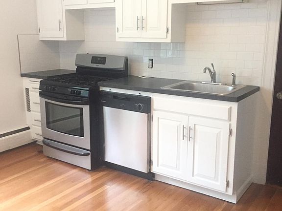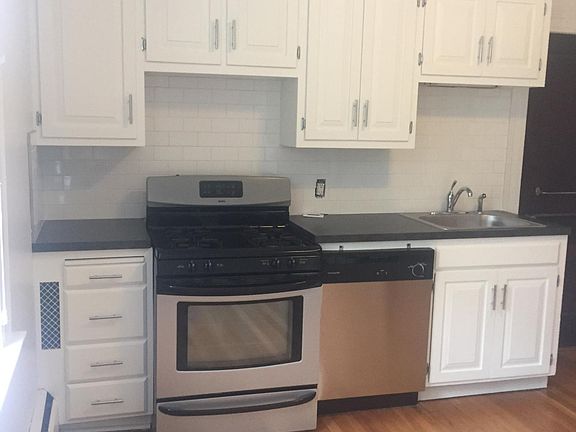 Spacious 3rd floor unit with eat-in kitchen. freshly painted, Hardwood floors throughout, large bedrooms, cedar closet. 1 covered parking space plus off-street parking, laundry in basement.