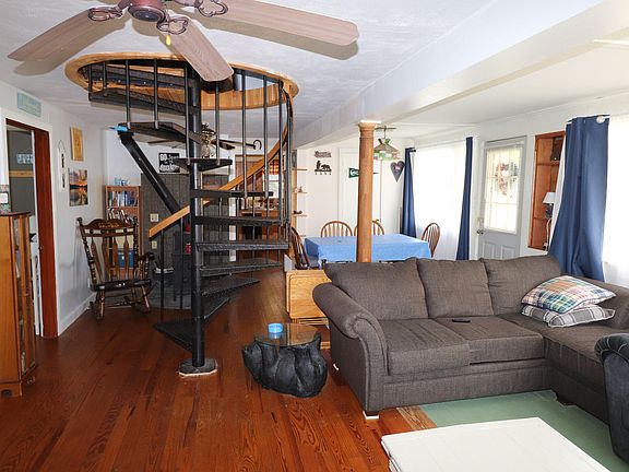 This camp has two bedrooms, one bath and a nice loft. The large living/ding room has a spiral staircase to access the loft. A spacious kitchen provides everything you need to prepare food for all your friends and family. It offers a nice lot with .49 acres of land and a close distance to the public beach. The property also has access to snowmobile and ATV trails.