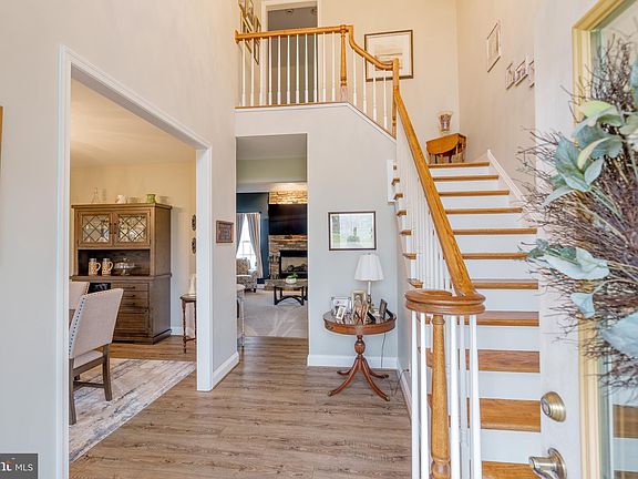 Pride of ownership shows in this beautiful, custom-built home, owned by the original owners. On over an acre in the community of Hopewell ridge, this home offers a grand, two-story entryway that leads to a formal dining room and gourmet kitchen with honey spice KraftMaid cabinets with custom roll out drawers, granite counters, glass cooktop, double wall oven, breakfast bar, walk-in pantry and cozy dining nook. The family room features a vaulted ceiling, a gas fireplace with stone surround and a custom-built mantle. A bright, airy owner's suite on the main level offers an amazing new bathroom with custom tiled shower, jetted tub, dual vanity and walk-in closet with custom shelving. An additional main level bedroom with en-suite full bath and a dreamy window seat would make a great guest room or in-law suite. A convenient, main level laundry room includes storage and utility sink. Upstairs there are three additional bedrooms, a pass-through full bath, large bonus room/office and sitting room that provides additional living space. Don't miss the home theater (included), wet bar, game room, and half bath in the finished walk-out basement. Pella doors and Pella windows that are hardwired for candles, CORETEX Plus HD luxury vinyl plank flooring, custom painted and new carpet on main level in last few years. Many recent updates including new large driveway with extension (2023), new well pump and tank (2023), garage door (2023), and more. A large shed with electric, built-in cabinets and a concrete pad that offers a great space to store equipment. Stamped concrete with custom paver patio with built in exterior speakers. This home shows like a model home, schedule your tour today.
