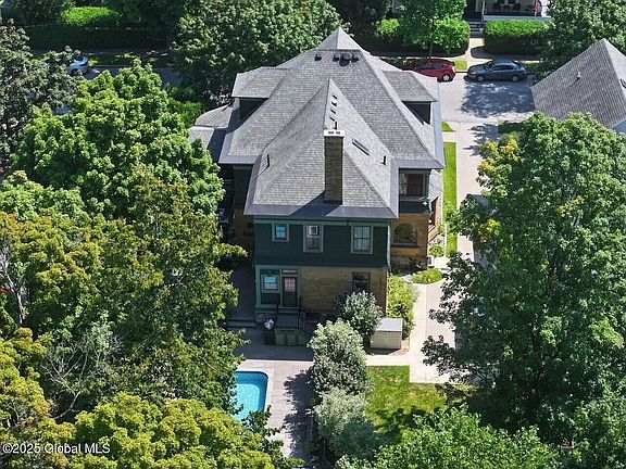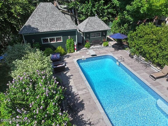 OPEN HOUSE Sun 7/27 12-2 This rare 1899 Victorian, designed by famed architect Newton Brezee, offers 6 bedrooms, 4.5 baths, and timeless elegance with modern comforts. With only two owners, it has a rich history and proven summer rental income. Features include original hardwood floors, exquisite woodwork, and a flexible third-floor suite. Enjoy one of Saratoga's best wraparound porches! The spacious yard features lush landscaping, beautiful perennial gardens, a luxurious in-ground pool, and a bluestone patio that creates a private resort-like oasis. A carriage house and pool house add further character and functionality, creating your own paradise in the heart of the East Side. Just a short walk to the iconic Saratoga Race Course and only 6 blocks from Broadway, this home offers it all!