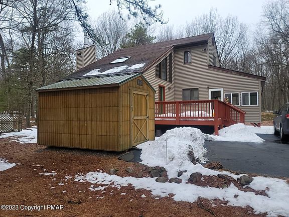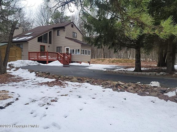 Great Price Reduction on this Salt Box Home that sits on a beautiful half acre ,corner property. This beautiful 3 Bedroom, 2 Bathrooms home that boast an open and airy layout with vaulted ceilings and an extremely cozy Fireplace. This home is very airy and bright due to a lot of windows and skylights. There is also a Sunroom and Deck, 2 large sheds that is great for storage, Large Paved Driveway and a Water Filtration System. Location! Location! Location! Close to Bethlehem Water Authority where you can Hunt or Hike, Close to 193 Acre Lake., Clubhouse, Pool in Towamensing Trails. You are literally minutes away from All Pocono Attractions, Int. 476 and Int.80 STR Friendly. House has been freshly painted. See Updated Pictures.