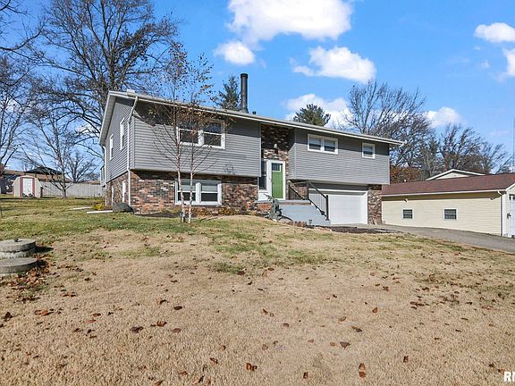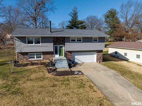 A great find close to Lake Springfield and Lincoln Memorial gardens in East Sunset View. This well maintained and nicely updated home offers a large living room, timeless white kitchen with granite countertops and stainless steel appliances. 3 Bedrooms, 2 full baths, 1 half bath, a two car attached garage and sits on a half acre lot overlooking open field. Newer roof (approximately 8 years old) with gutter guards, lower level bath was completely renovated, new furnace, water heater replaced in 2022, fireplace in the family room / 4th bedroom. Windows and front door have been replaced as well.