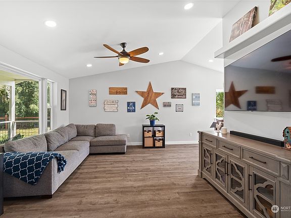 Peaceful living on ~12 acres! So much curb appeal in this Montesano 2+ bed, 1.75 bath home sits on nearly 12 acres outside of town! Open-concept floor plan with great inside/outside entertaining space and beautiful white kitchen with butcher block counters, gray tile backsplash, and peninsula seating. The primary suite offers a tiled 3/4 bath and walk in closet, alongside one other bedroom, full bath, and bonus room that can be used for office, hobby - you choose! Expansive, Trex deck spans the back of home with incredible river/pasture views! Attached two-car garage, two-car+ shop and barn down in the pasture along with matured and fenced garden found on the property. Home sits high on the hill, so no flood zone and is ready for you!