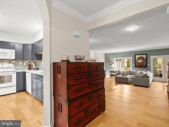 This beautifully updated brick and vinyl siding home offers the perfect blend of comfort, style, and convenience. Step inside to a welcoming foyer featuring gorgeous hardwood floors and crown molding that flow seamlessly into the living and dining areas. The spacious living room boasts elegant crown molding, rich hardwoods, and French doors that open to a freshly painted deck, ideal for entertaining or relaxing outdoors. The dining room provides a natural connection to the kitchen for effortless hosting. The updated kitchen is a true highlight, showcasing quartz countertops, a decorative backsplash, shaker-style cabinetry with soft-close drawers, a pantry, a dining area, and sleek appliances with electric cooking. Upstairs, the luxurious primary suite impresses with a vaulted ceiling, hardwood flooring, abundant natural light, a walk-in closet, and a spa-inspired en-suite bath with a double vanity, soaking tub, and walk-in shower. Two additional bedrooms and a stylish hall bath complete the upper-level retreat. The fully finished lower level expands the living space with luxury vinyl plank flooring, a full bath, and versatile areas perfect for an office, recreation room, or game space. Enjoy walk-out access to the backyard along with secure storage. Recent updates include the kitchen, flooring, primary bath, appliances, and deck painting, ensuring peace of mind for years to come. Conveniently located near Quarry Lake, shopping, dining, and entertainment, with easy access to I-695 and I-83 for travel to Baltimore, Washington, D.C., and beyond, this home offers both lifestyle and location in one.