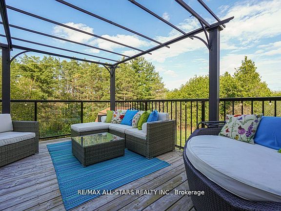 Tucked away on a quiet street at the edge of town, this chic semi-detached home was built in 2017 and feels perfectly idyllic. It combines privacy, style, and convenience. Siding onto protected LSRCA land with no neighbours beside or behind, it feels like country living while being just moments from Uxbridge's shops, restaurants, trails, and amenities. The main floor features hardwood throughout and an open-concept layout ideal for modern living. The dining room flows into a spacious living room with a custom gas fireplace, built-in shelving, and a walkout to a large upper deck with glass railings. The kitchen is fully upgraded with quartz countertops, a four-seater island, stainless steel appliances, and pot lights. Upstairs, the primary bedroom offers a walk-in closet and a luxurious five-piece ensuite with vaulted ceilings. Two additional bedrooms feature custom closets and share a Jack and Jill bathroom. The upper-level laundry room is stylish and functional, with built-in cabinetry and a deep sink. The fully legal walkout basement apartment is ideal for in-laws, guests, or rental income. Professionally landscaped with a private fenced yard, the apartment has a bright living space with luxury vinyl floors, pot lights, and a large window. The open-concept kitchen includes granite countertops, stainless steel appliances, and a three-seater island. A stylish three-piece bathroom completes the space. Additional features include a 200-amp electrical service, an insulated one-car garage with Drycore flooring, a modern insulated garage door, and a wall-mounted heating and A/C unit. The exterior boasts a covered front porch, two-tiered decks, hardscaped patios, in-ground sprinklers, and exterior lighting. This home also includes central air, central vacuum, and custom California Closets throughout. This turnkey property is move-in ready and offers a chic, functional home with income potential in one of Uxbridge's most desirable neighborhoods.